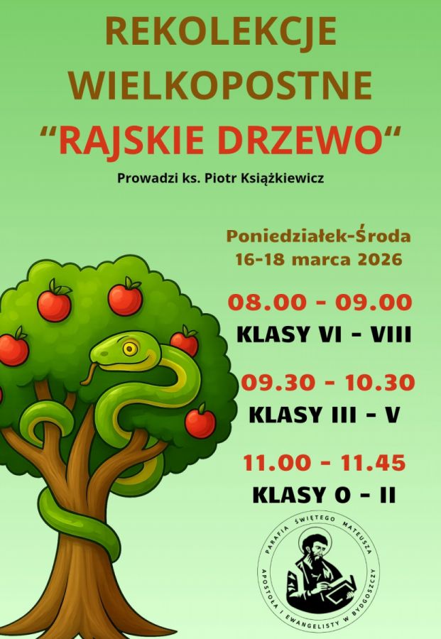 Od poniedziałku rozpoczynają się rekolekcje dla uczniów SP nr 65, które poprowadzi Ks. Piotr Książkiewicz. Nauki dla uczniów klas 6-8 o godz. 8.00, dla uczniów klas 3-5 o godz. 9.30, a dla uczniów klas 0-2 o 11.00. We wtorek nauka dla dzieci z przedszkola o godz. 11.45. Program umieszczony jest w gablotce, w szkole i na stronie internetowej Parafii. Ks. Piotra oraz Uczniów, Nauczycieli i Pracowników SP nr 65 polecamy naszym modlitwom.